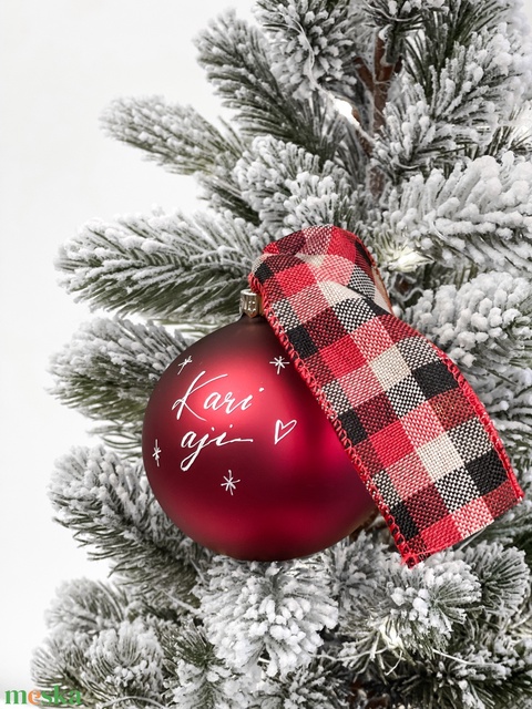 Kézzel írt karácsonyi matt bordó üveggömb - Feliratos - Egyedi - Névre szóló