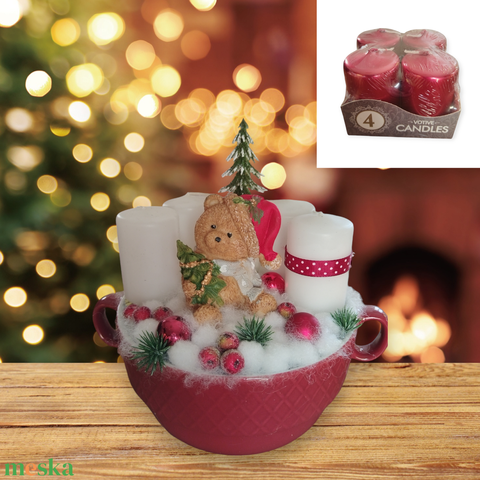- Anyaga: kerámia tálka, polyresin maci, paraffin gyertya