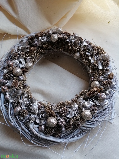 - Anyaga: szalma koszorú, műszőrme, festett remések, műfenyő