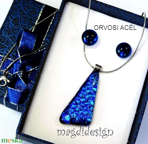 Kék dichroic üvegékszer szett nyaklánc, stiftes fülbevaló