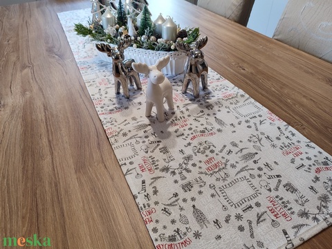 Karácsonyi mintás textil asztalfutó, asztalterítő