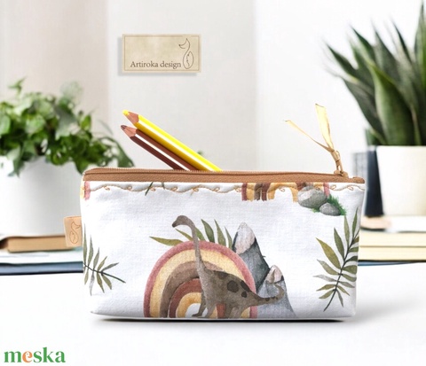 Dinoszaurusz mintás prémium pamut tolltartó neszesszer - Artiroka design