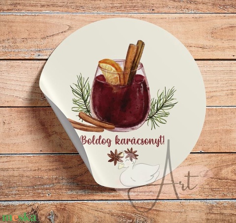 Karácsonyi forralt bor matrica - kör matrica - matrica - cuki - karácsony - boldog karácsonyt - ajándék - bor - fahéj