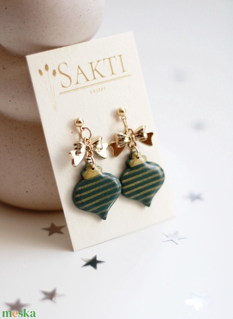 Zöld csíkos karácsonyfadísz függő fülbevaló, függő fülbevaló, karácsonyi fülbevaló