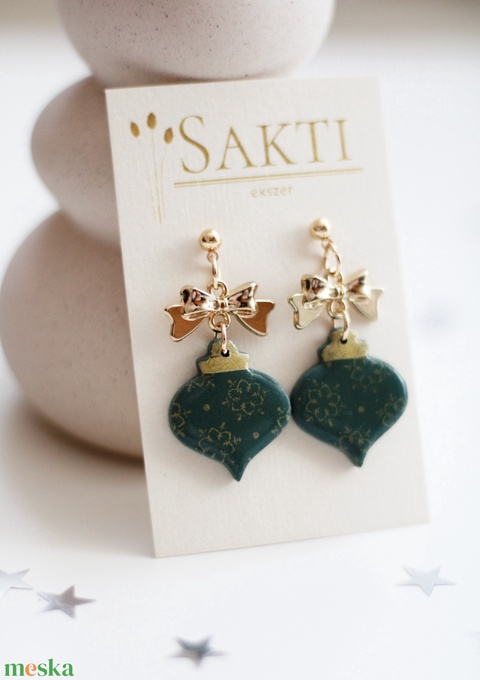 Zöld mintás karácsonyfadísz függő fülbevaló, függő fülbevaló, karácsonyi fülbevaló