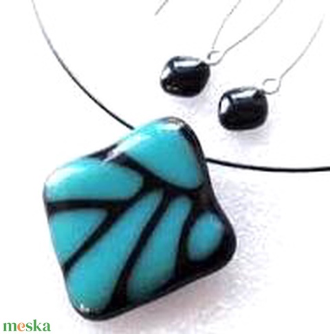 FÉMMENTES! Türkiz szélrózsa feketén, fémmentes trendi medál.