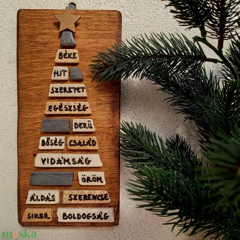 Jókívánság karácsonyfa natúr - kavicskép