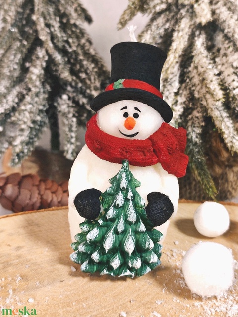 Kézműves karácsonyi gyertyák, kalapos hóember