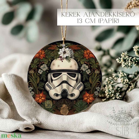 Karácsonyi kerek, formavágott ajándékátadó, csomag ajándékkísérő, csillagharcos, rohamosztagos