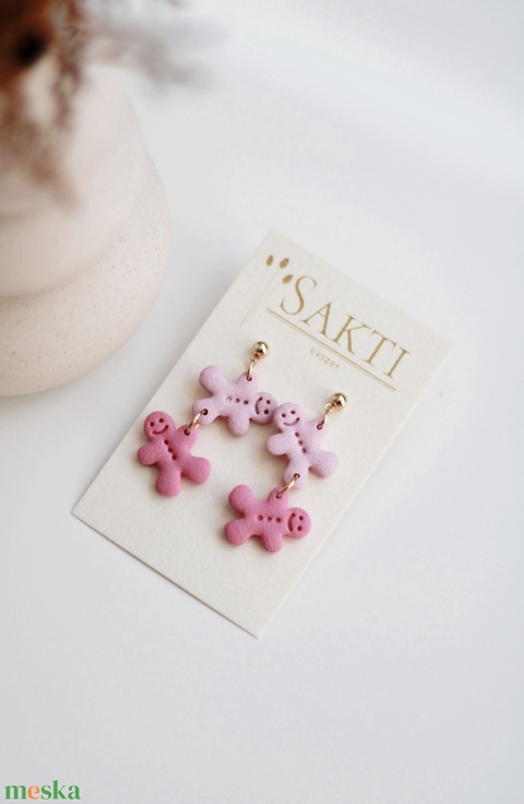 Rózsaszín mézi figurás függő fülbevaló köves, függő fülbevaló, fülbevaló