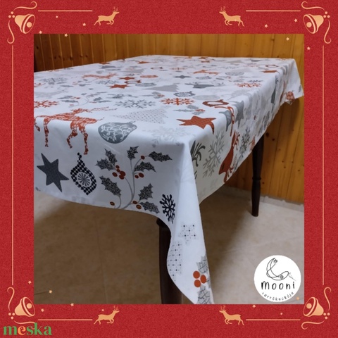 Karácsonyi asztalterítő - (fehér alapon karácsonyi mintás)