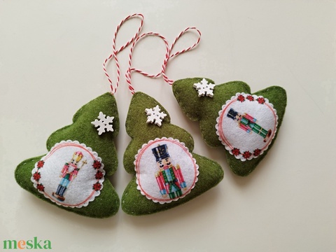 Karácsonyfa formájú diótörő mintájú filc karácsonyfadísz