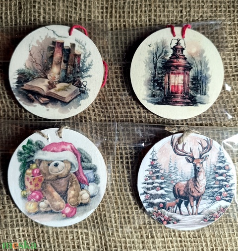 4 darabos egyesével csomagolt fa karácsonyfa dísz