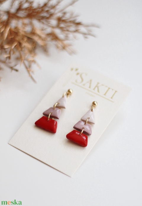 három részes karácsonyfa fülbevaló, függő fülbevaló, fülbevaló