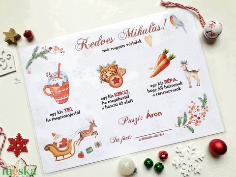 Mikulás váró alátét, Laminált Névreszóló, Levél a Mikulástól, Mikulás kínáló tálca, Mikluásnak, Mikulásra készülődés,