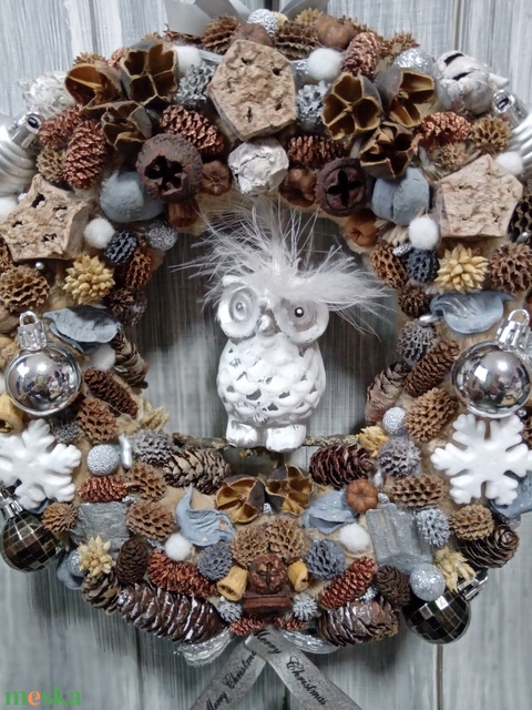 - Anyaga: szalmakoszorú alap, termések, díszgömb, szalag, műanyag figura