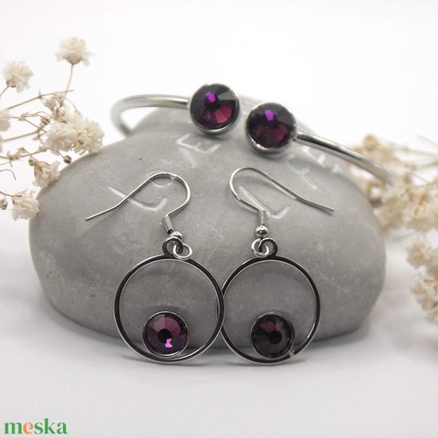 Nemesacél karkötő és fülbevaló szett sötét-ametiszt Swarovski kristályokkal - Ametra
