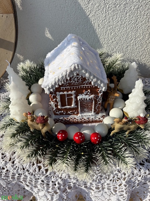 - Anyaga: gyanta, fenyőfa, házikó, led