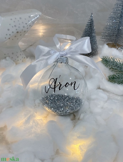 Átlátszó karácsonyfa dísz 8cm (csillámmal töltve)