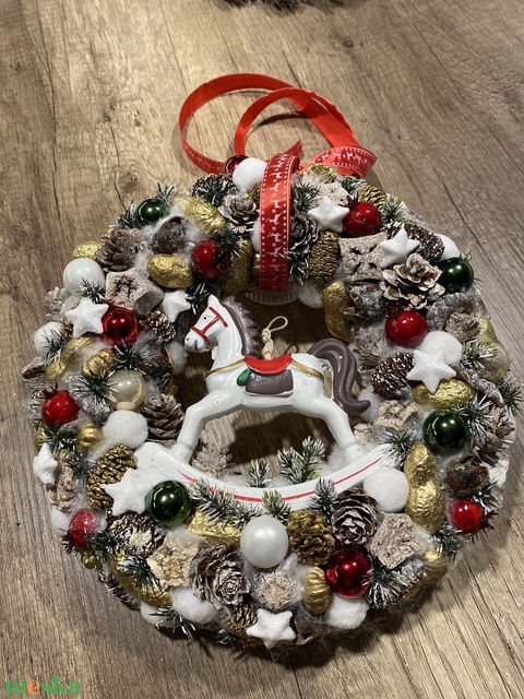 - Anyaga: könnyített hungarocell alap, kerámia figura, termések, üveg gömbök