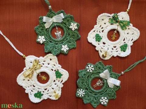 Karácsonyfadísz/ajándékkísérő/ajtó-ablak dísz horgolt