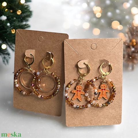 Mézeskalács Karika - lógós, karika fülbevaló, választható charm-mal, véletlenszerű barna gyöngyök, egyedi és elegáns