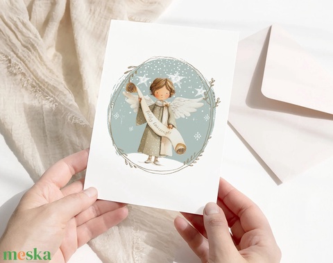 Karácsonyi képeslap, angyalos üdvözlőlap, ajándékkísérő szett 3 db