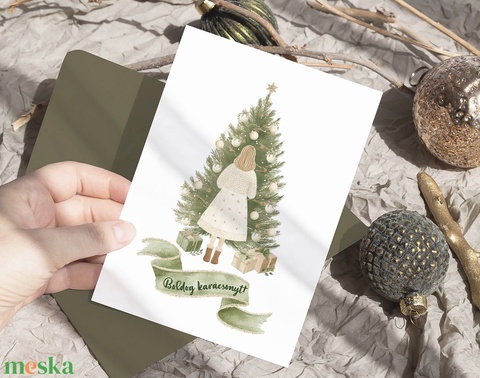 Karácsonyi képeslap, natural üdvözlőlap, ajándékkísérő szett 3 db