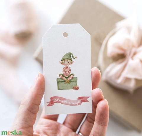 Karácsonyi ajándékkísérő, Mikulás ajándékátadó címke szett 6 db