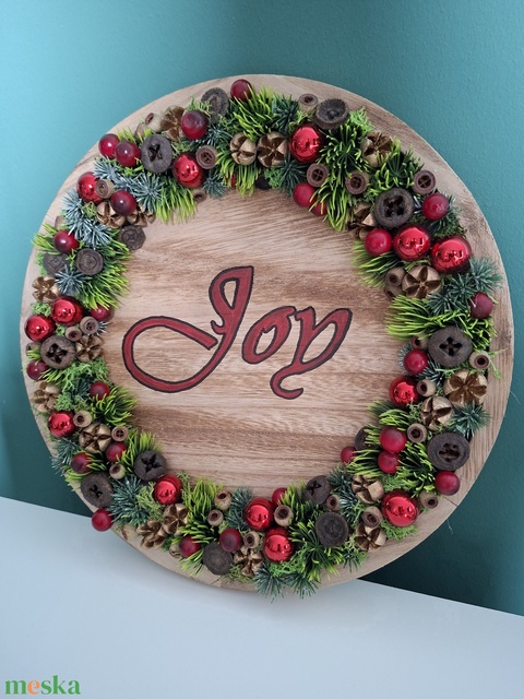 Joy feliratú piros karácsonyi ajtódísz, falidísz