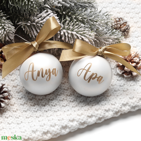 Az ár két darab karácsonyi gömböt tartalmaz, felirattal és masnival.
