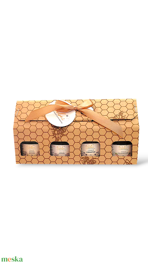 Mézes ajándék doboz 3x50 gramm méz, 1 db 20 grammos virágpor