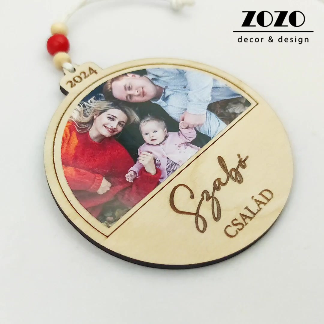➤ Éld át a karácsony varázsát ezzel a fából készült különleges dísszel, melyet a családi fotótokkal, névvel és évszámmal egyedileg készítünk el neked! Bármilyen fotóval és szöveggel elkészítjük! Igény szerint a dísz hátoldalát is gravírozzuk általad megadott egyedi szöveggel, idézettel, ezt a "Kiegészítő" legördülő menüben válaszd ki!