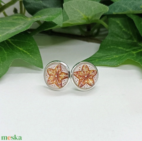 Mézeskalács üveglencsés kaboson pötty fülbevaló