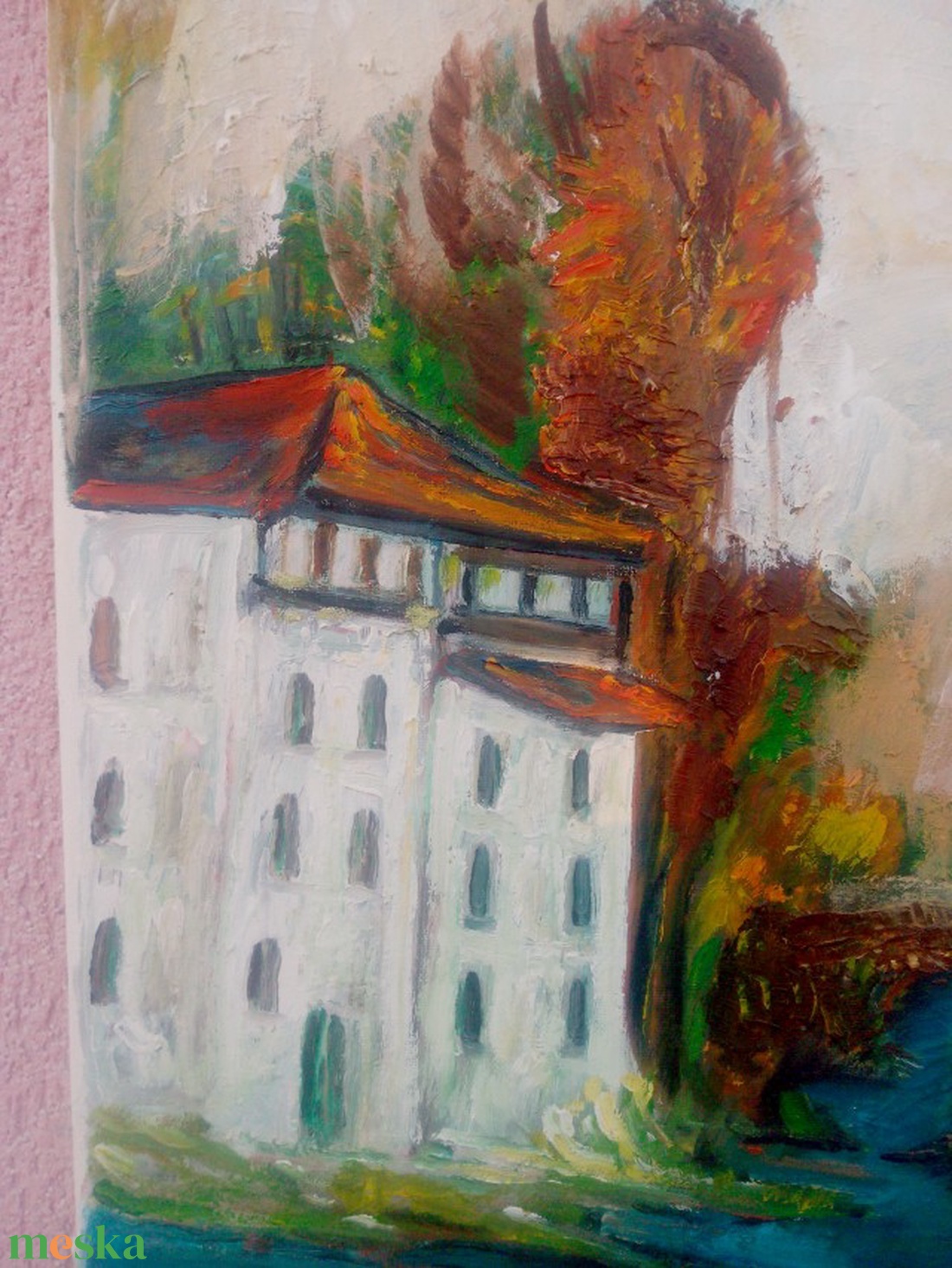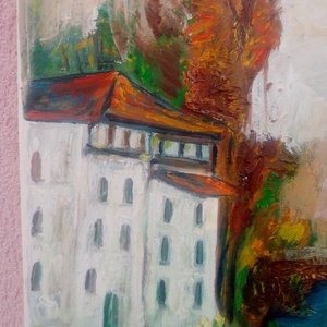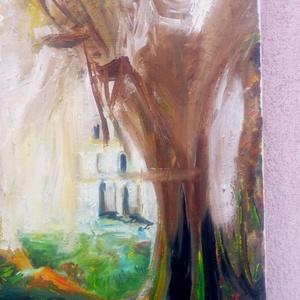 Kiszáradt fa a kanális mentén. Modern absztrakt festmény. Ismeretlen Holland festő műve.