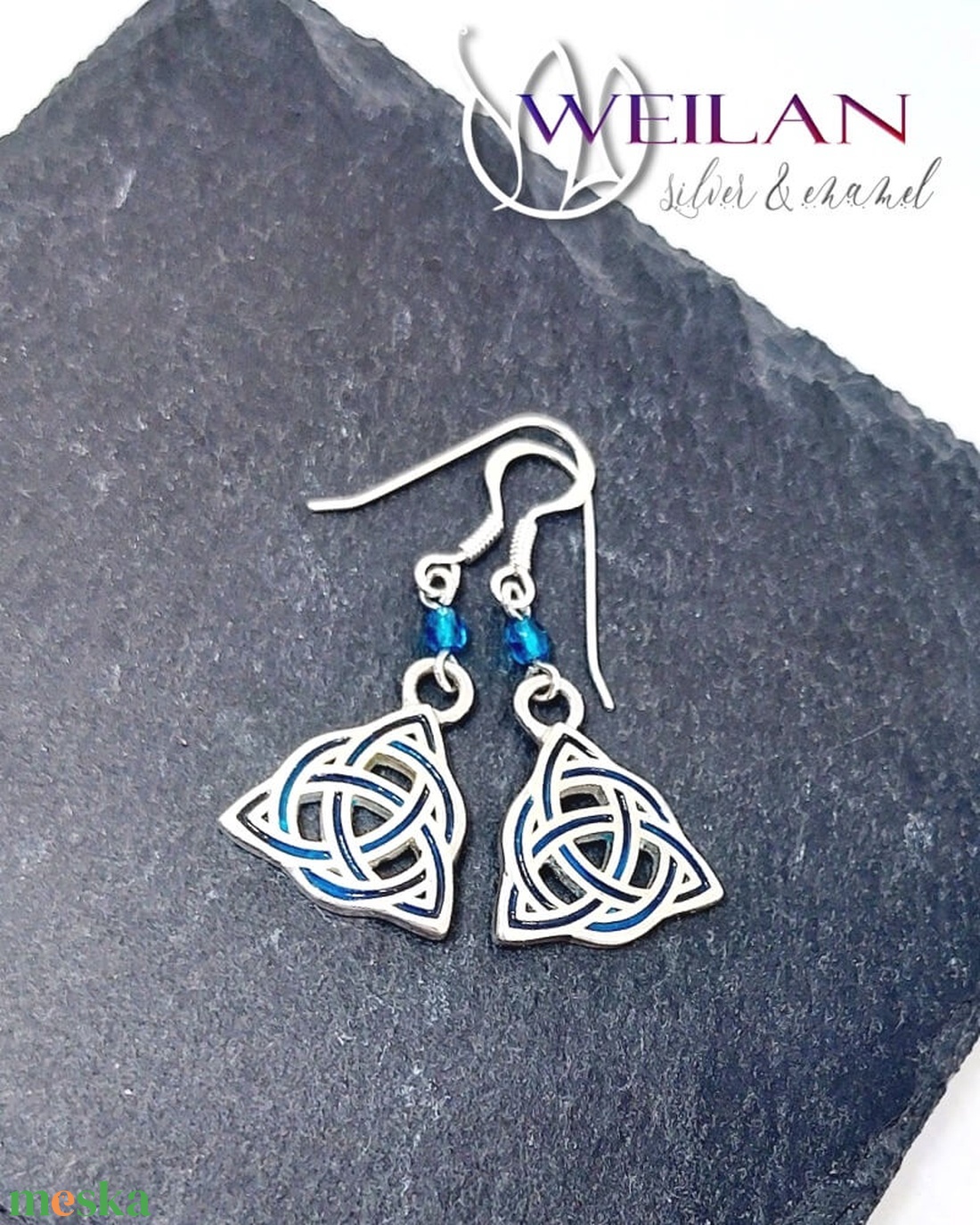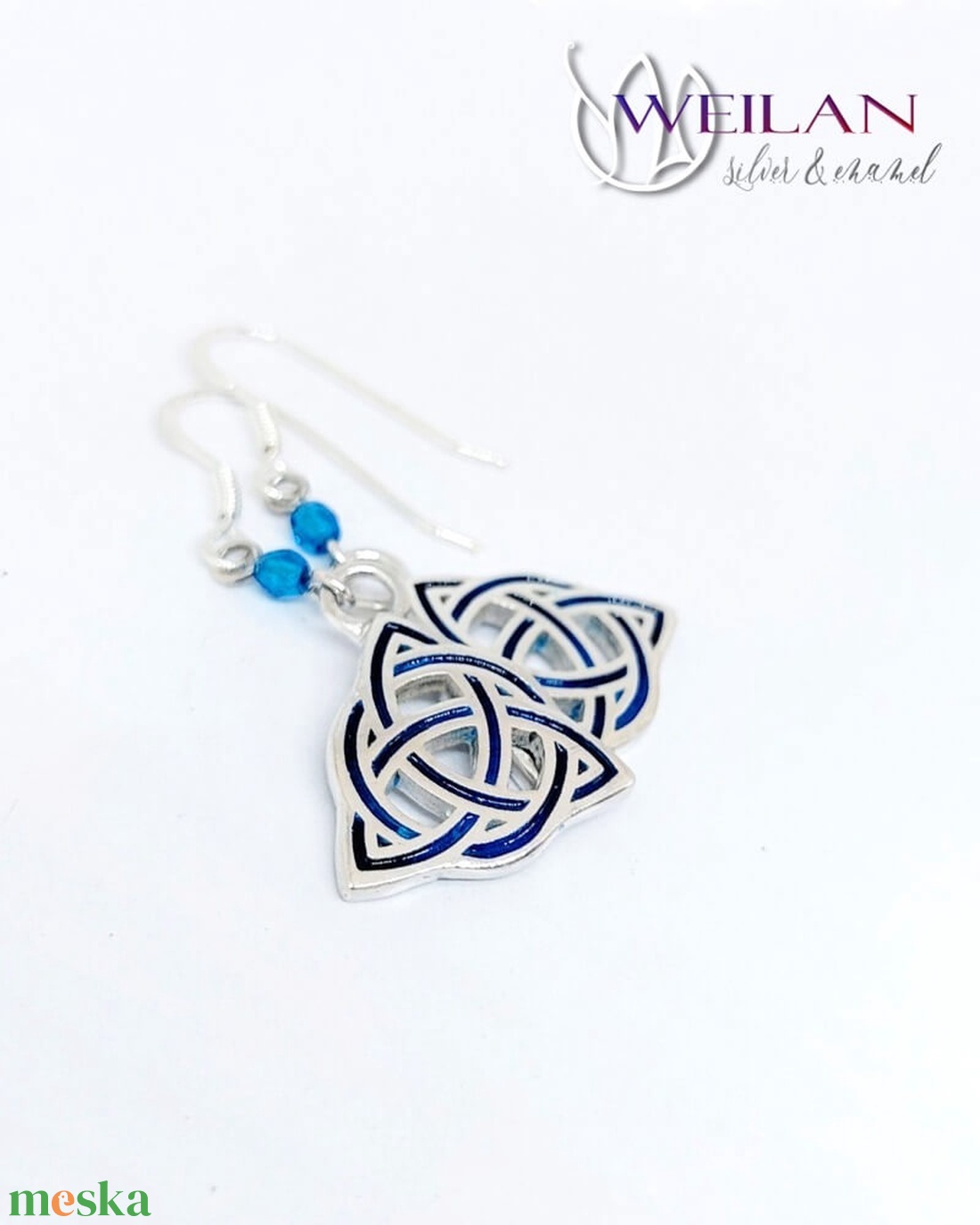 Kelta - Trinity ezüst tűzzománc fülbevaló, türkizkék