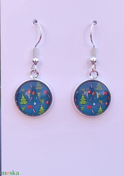 Karácsonyi üveglencsés fülbevaló 14 mm
