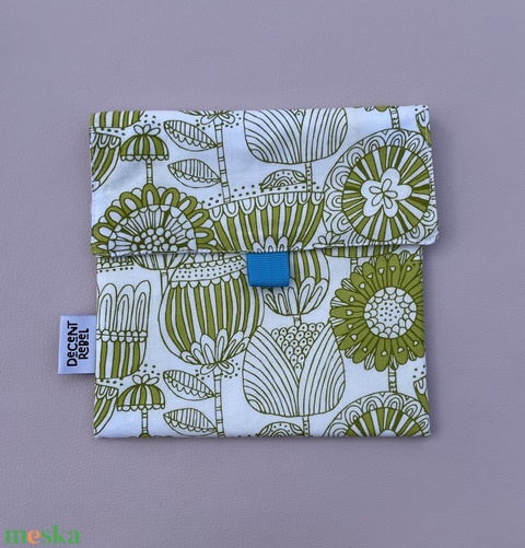 Uzsonnás tasak - fehér-zöld nagy virág mintás/kék
