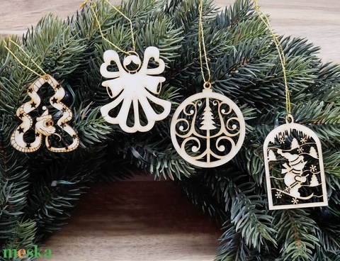 Karácsonyfadísz szett 13. (4 db natúr fa dísz)