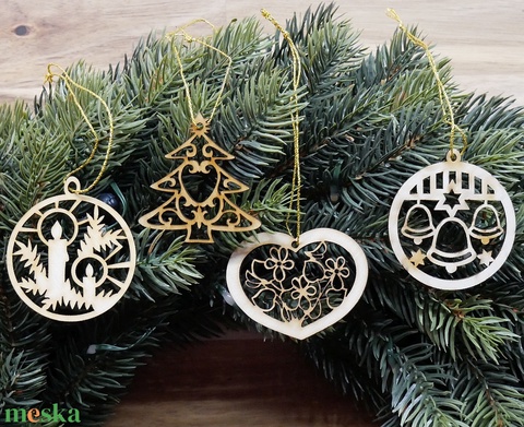 Karácsonyfadísz szett 10. (4 db natúr fa dísz)