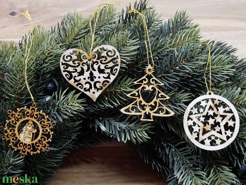 Karácsonyfadísz szett 7. (4 db natúr fa dísz)