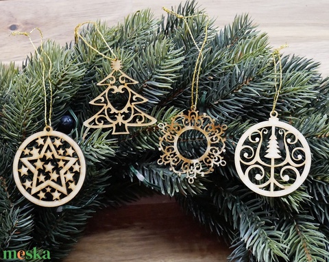 Karácsonyfadísz szett 2. (4 db natúr fa dísz)