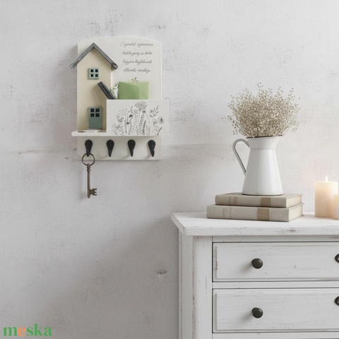Házikós kulcsakasztó, fali kulcstartó, egyedi felirattal is