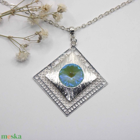 Swarovski kristályos nyaklánc, egyedi készítésú, négyszög formájú medállal, választható színű kristállyal