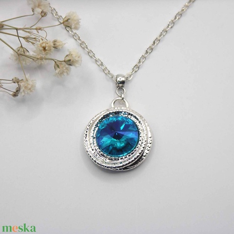 Swarovski kristályos nyaklánc, egyedi készítésú, peremes medállal, választható színű kristállyal