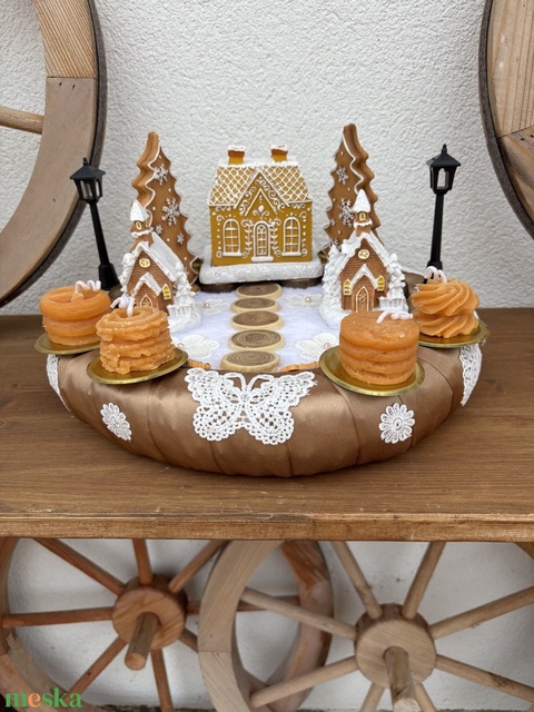 - Anyaga: pamut, csipke, szatén szalag, viasz gyertya, kerámia, poli, házikó