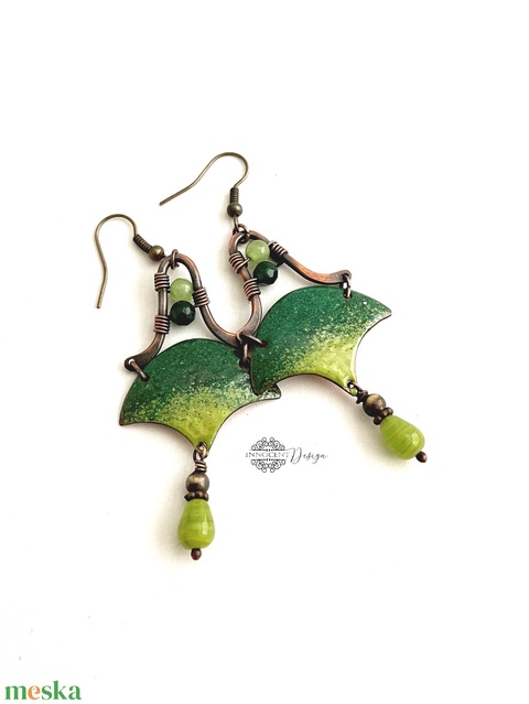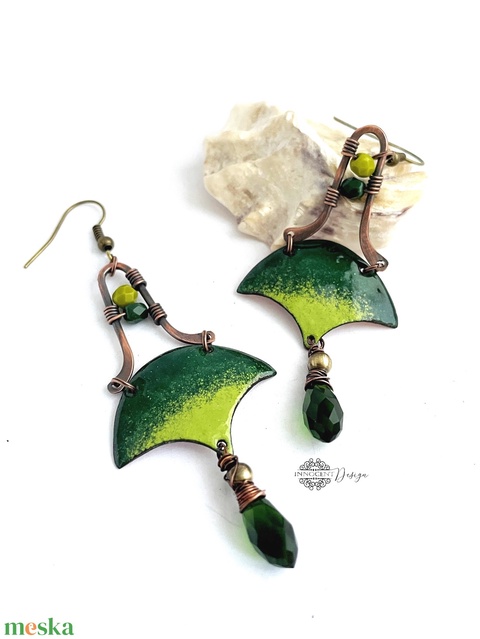 Szemira - tűzzománc-réz fülbevaló - zöld