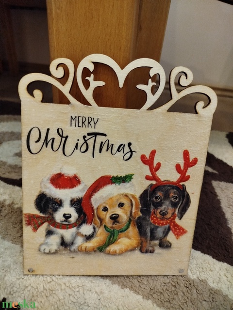 Aranyos kiskutyás tacskós karácsonyi tábla ajtódísz dekoráció