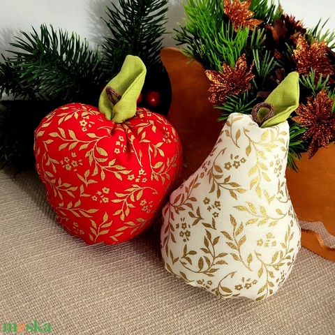 Karácsonyi alma és körte textil dekoráció, arany indás
