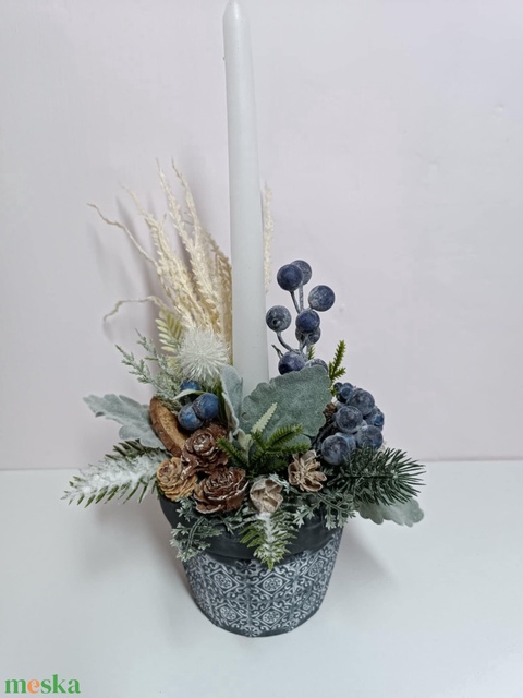 Kökény, karácsonyi asztaldísz gyertyával